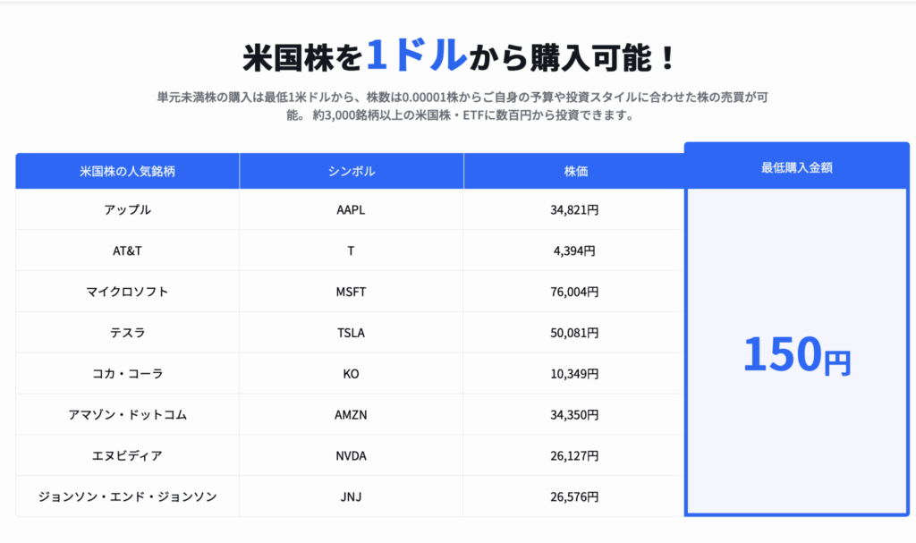 通常、米国株は1株単位での購入が必要なので数万円必要なケースがほとんどです。